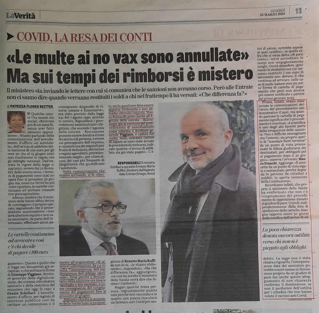 Il giornale La Verità ha contattato sia Agenzia Riscossione che il Ministero della salute, per avere informazioni in merito ma non ha ricevuto alcuna risposta.